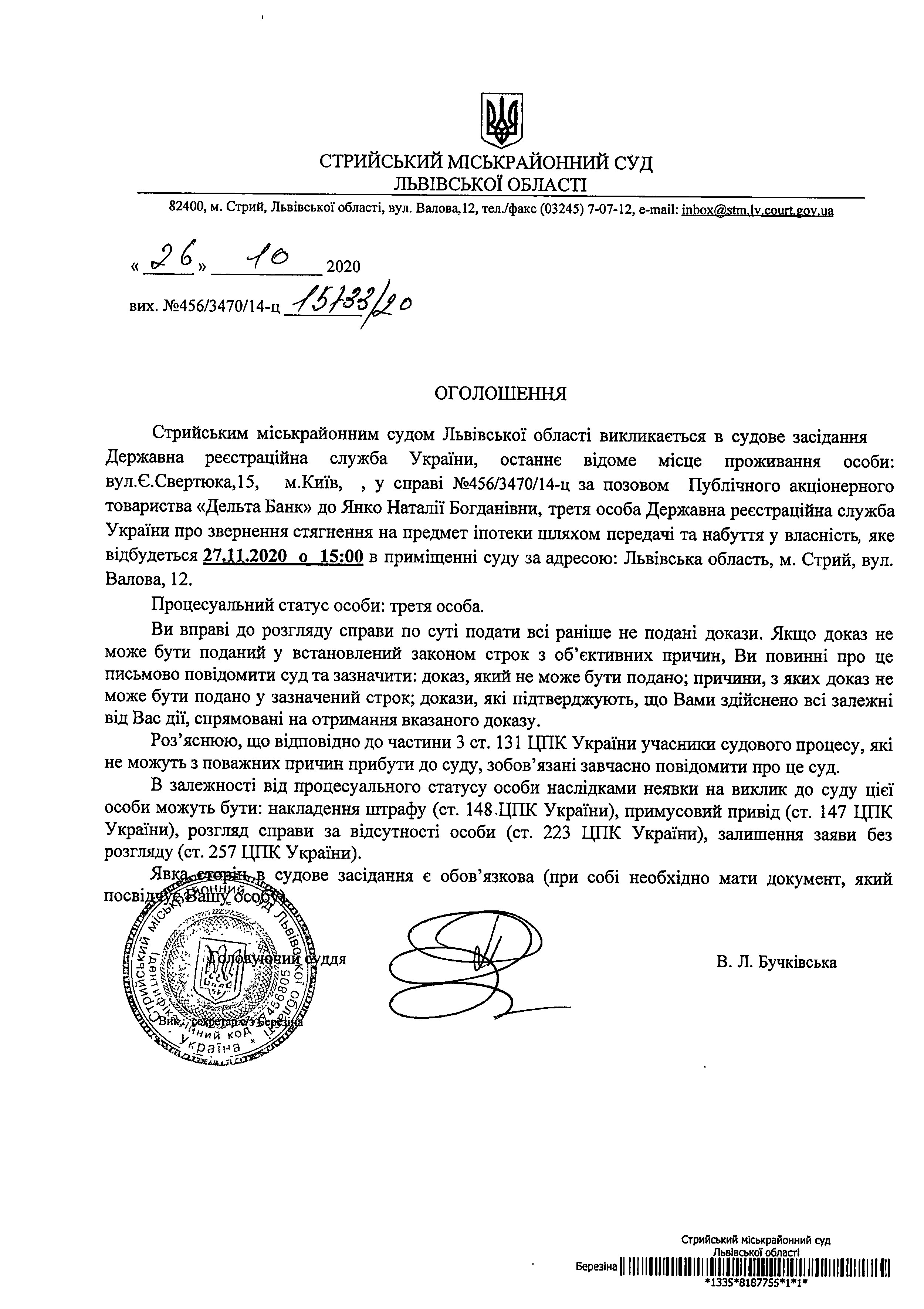 Про виклик Державної реєстраційної служби України