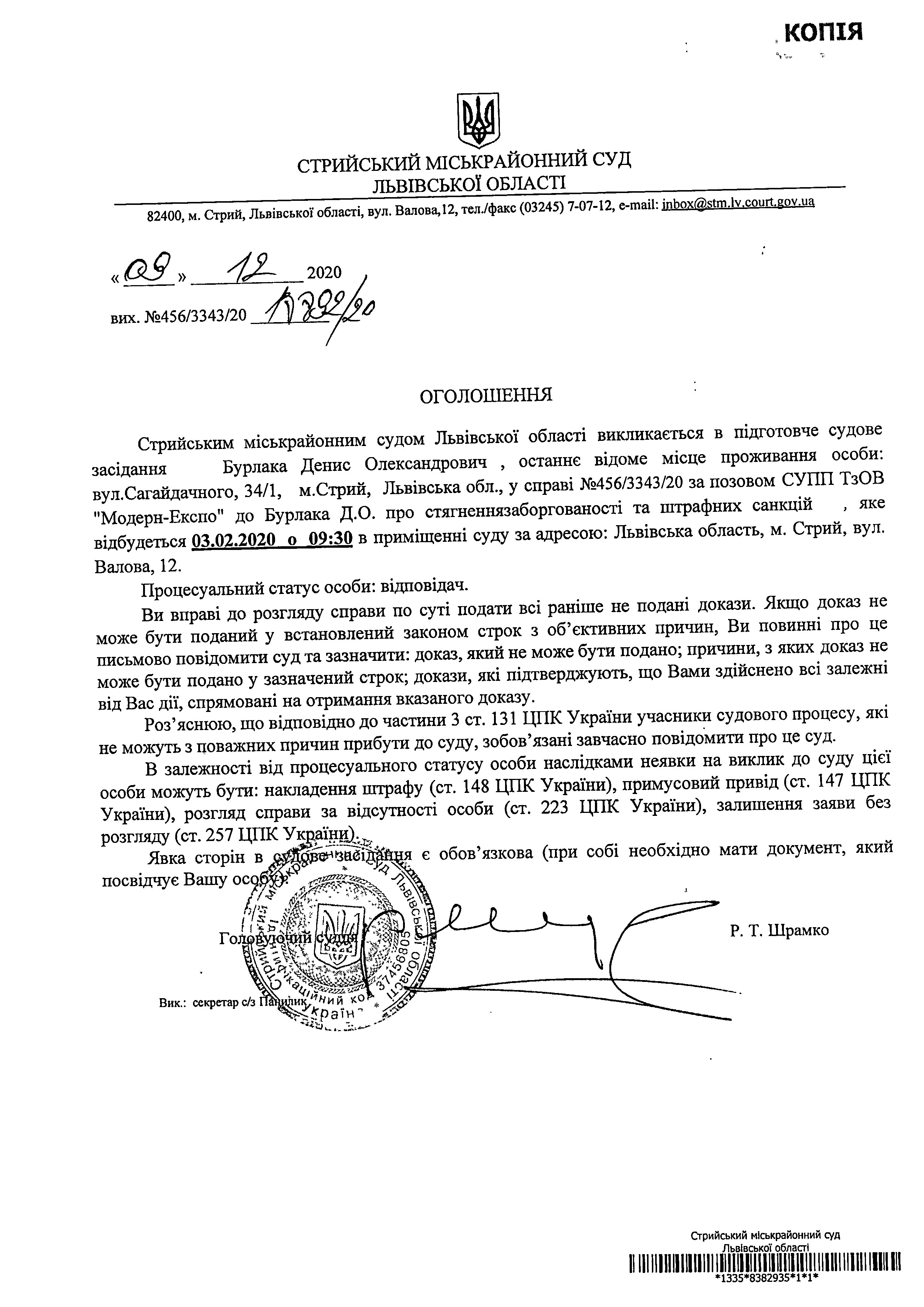 Про виклик Бурлака Д.О.