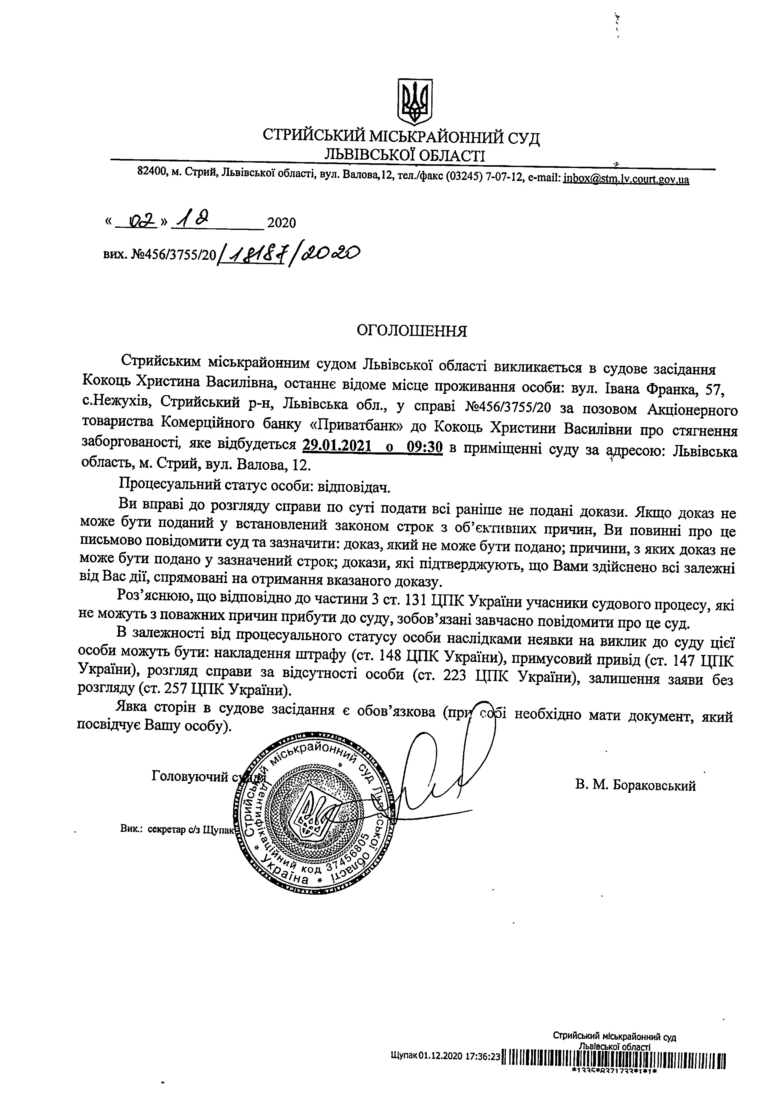 Про виклик Кокоць Х.В.