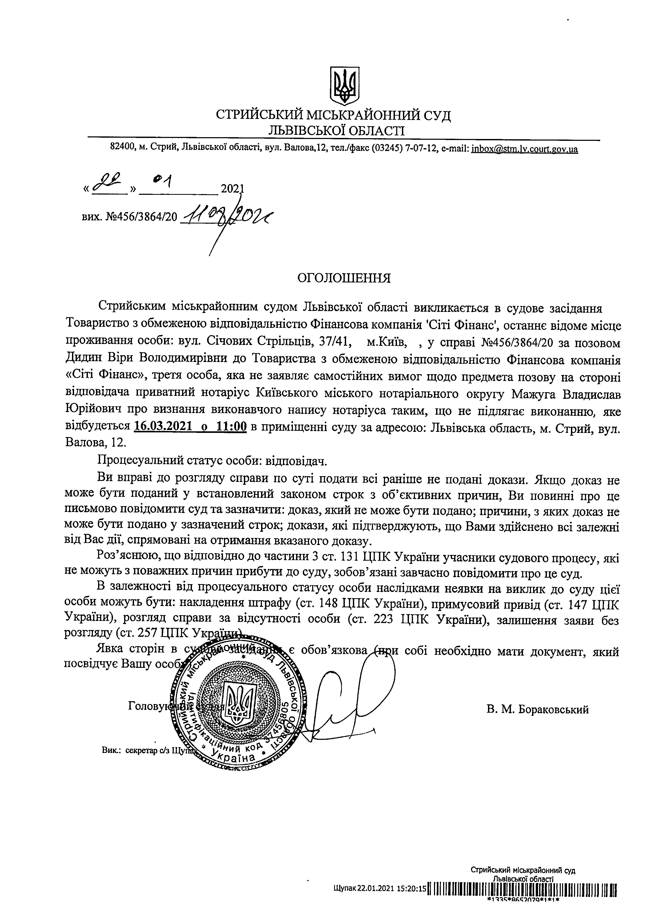 Про виклик ТзОВ ФК ""Сіті Фінанс"