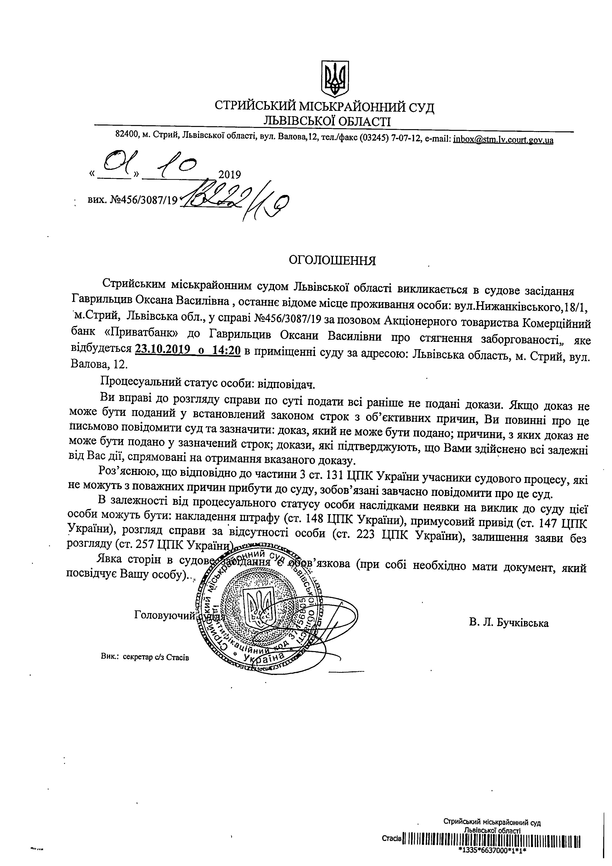 Про виклик Гаврильцив О.В.