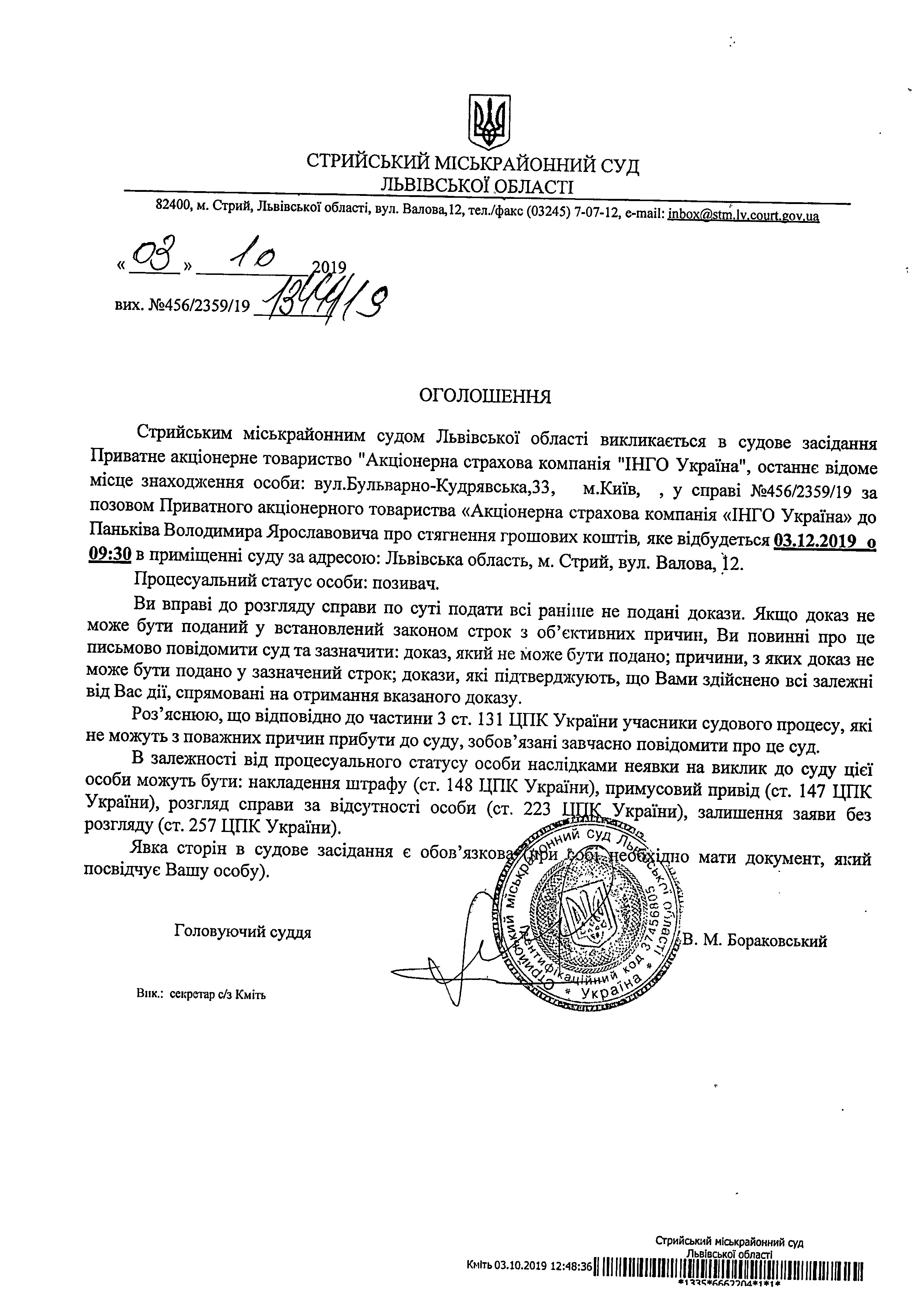 Про виклик ПАТ "Акціонерна страхова компанія "ІНГО Україна"