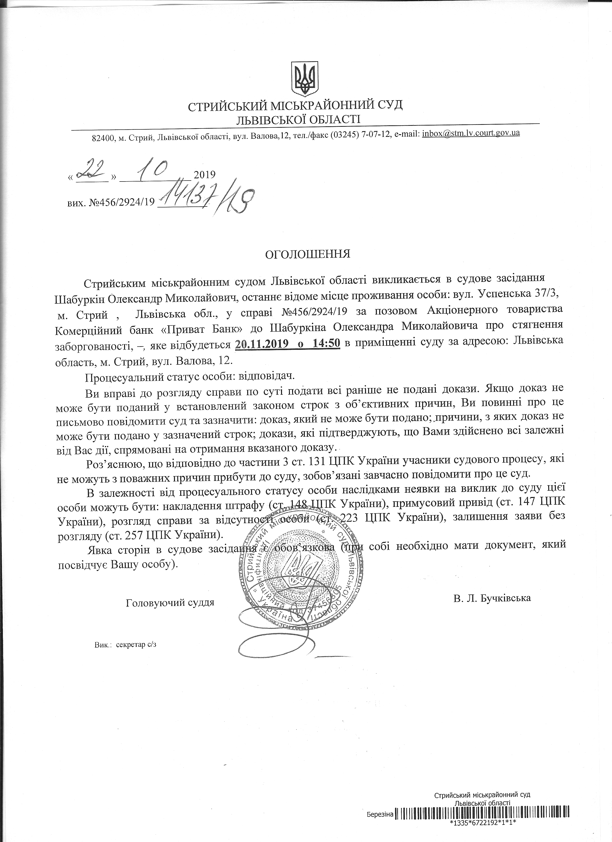 Про виклик Шабуркін О.М.