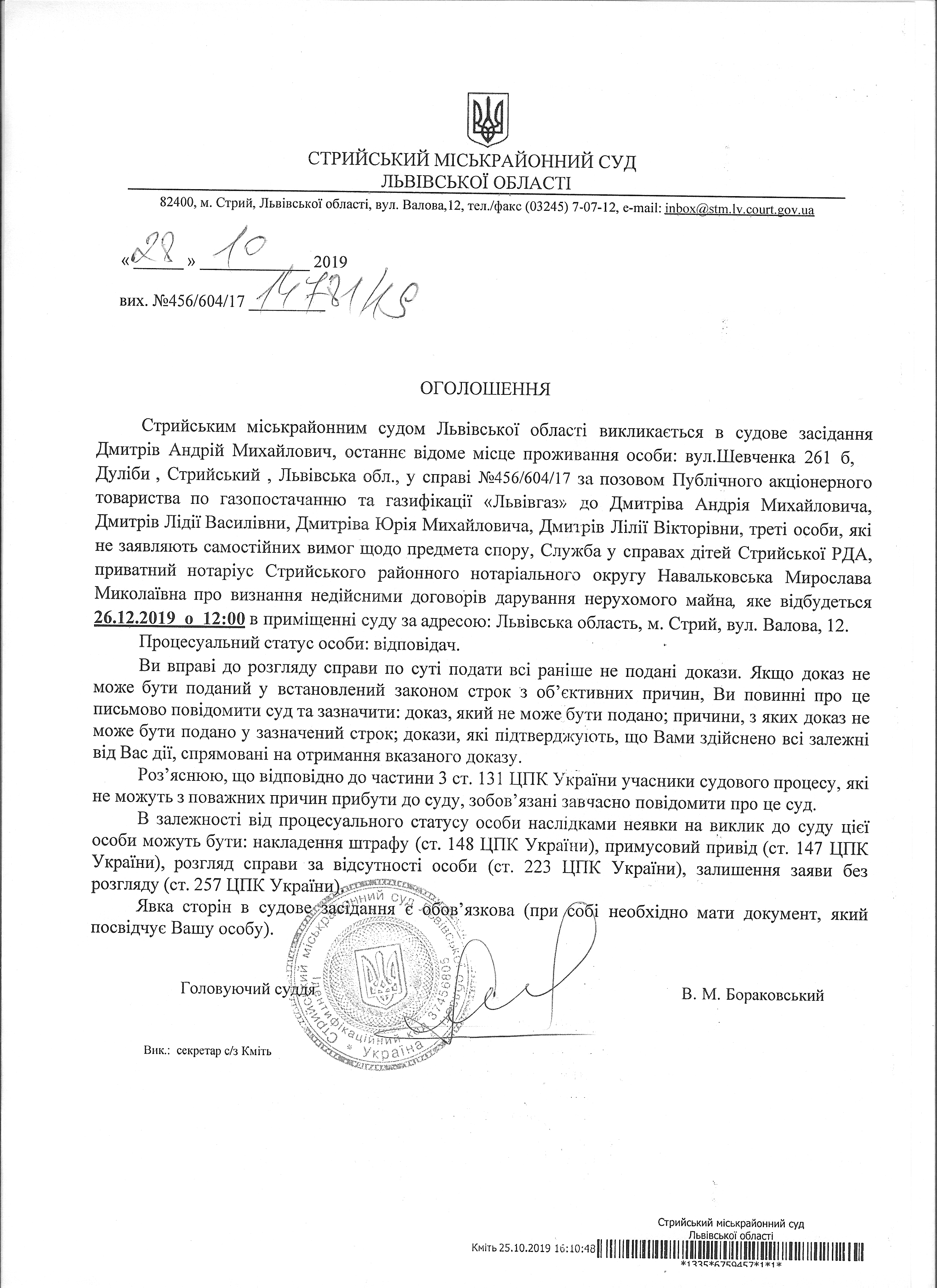Про виклик Дмитріва А.М.