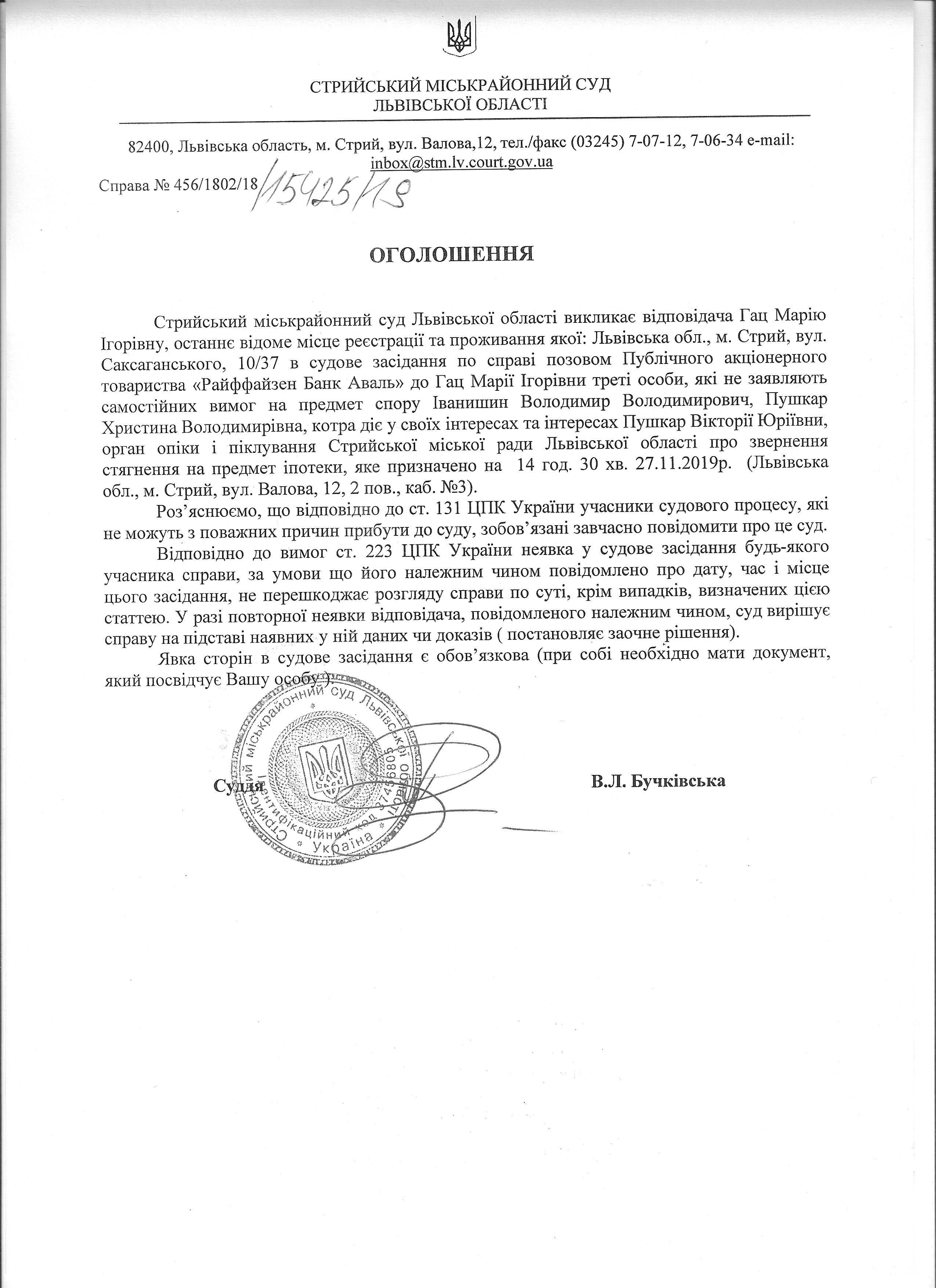 Про виклик Гац М.І.