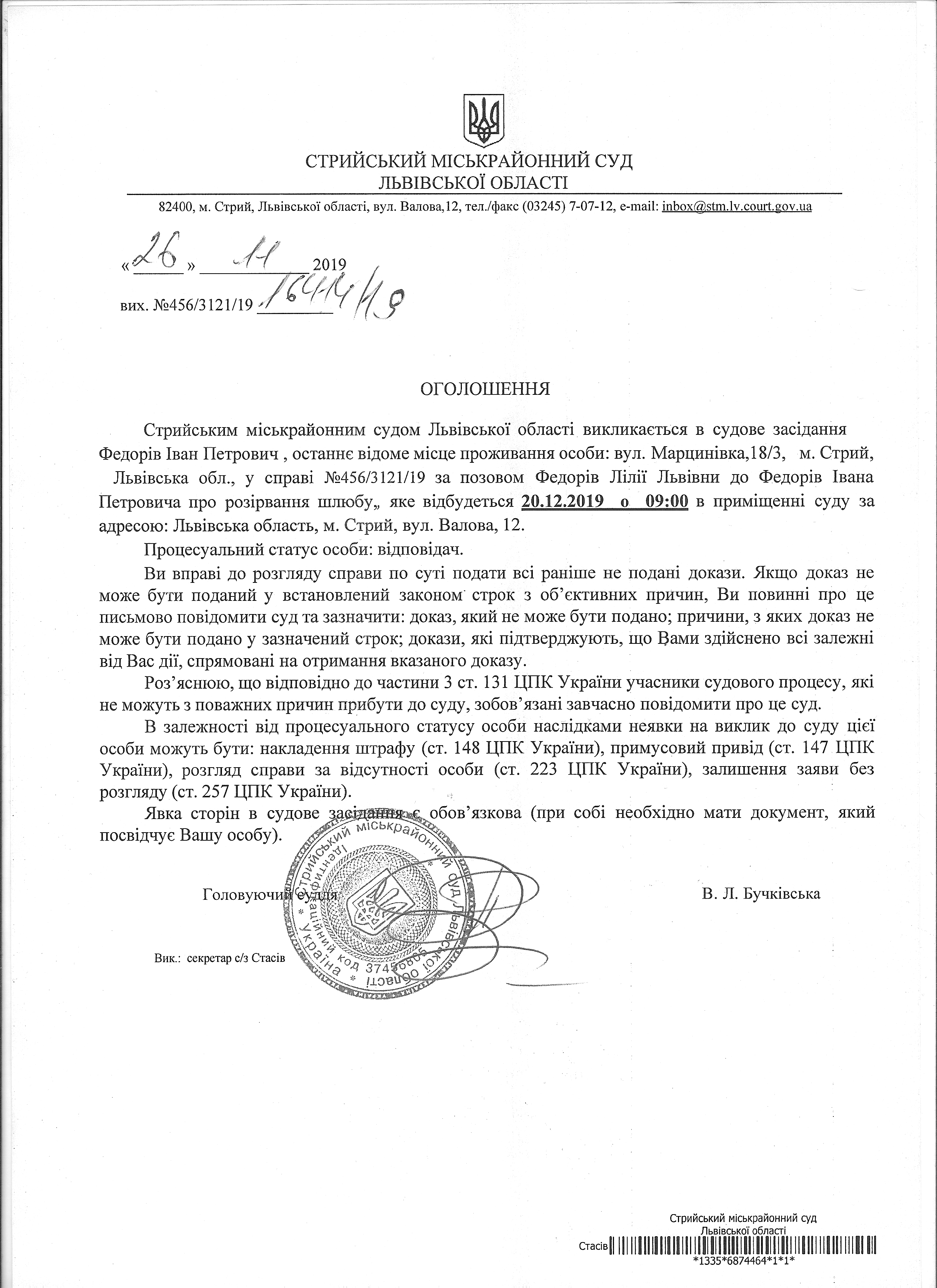 Про виклик Федорів І.П.