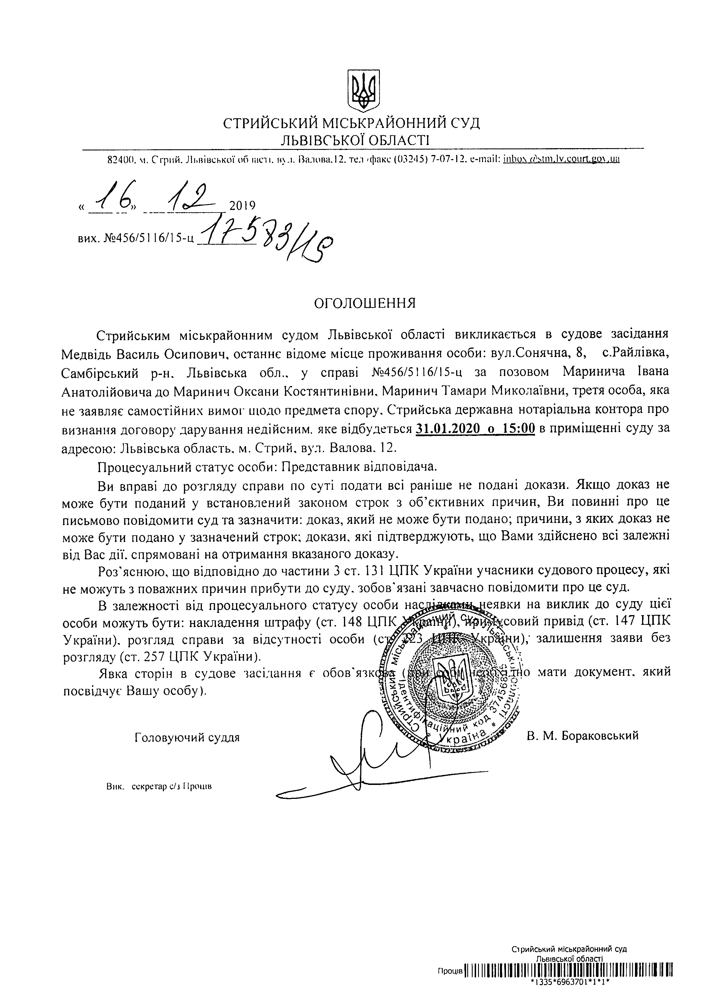 Про виклик Медвідь В.О.