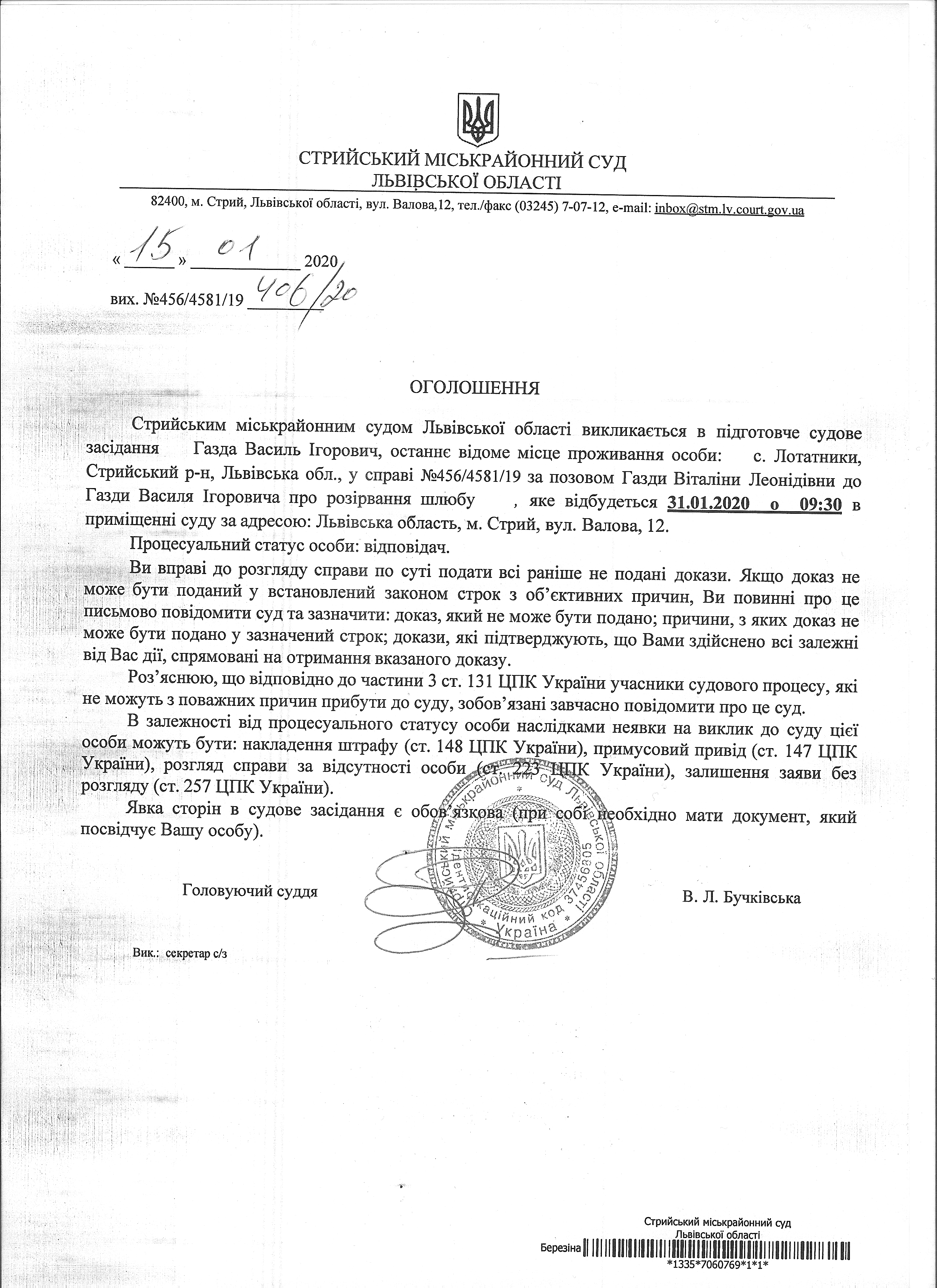 Про виклик Газди В.І.