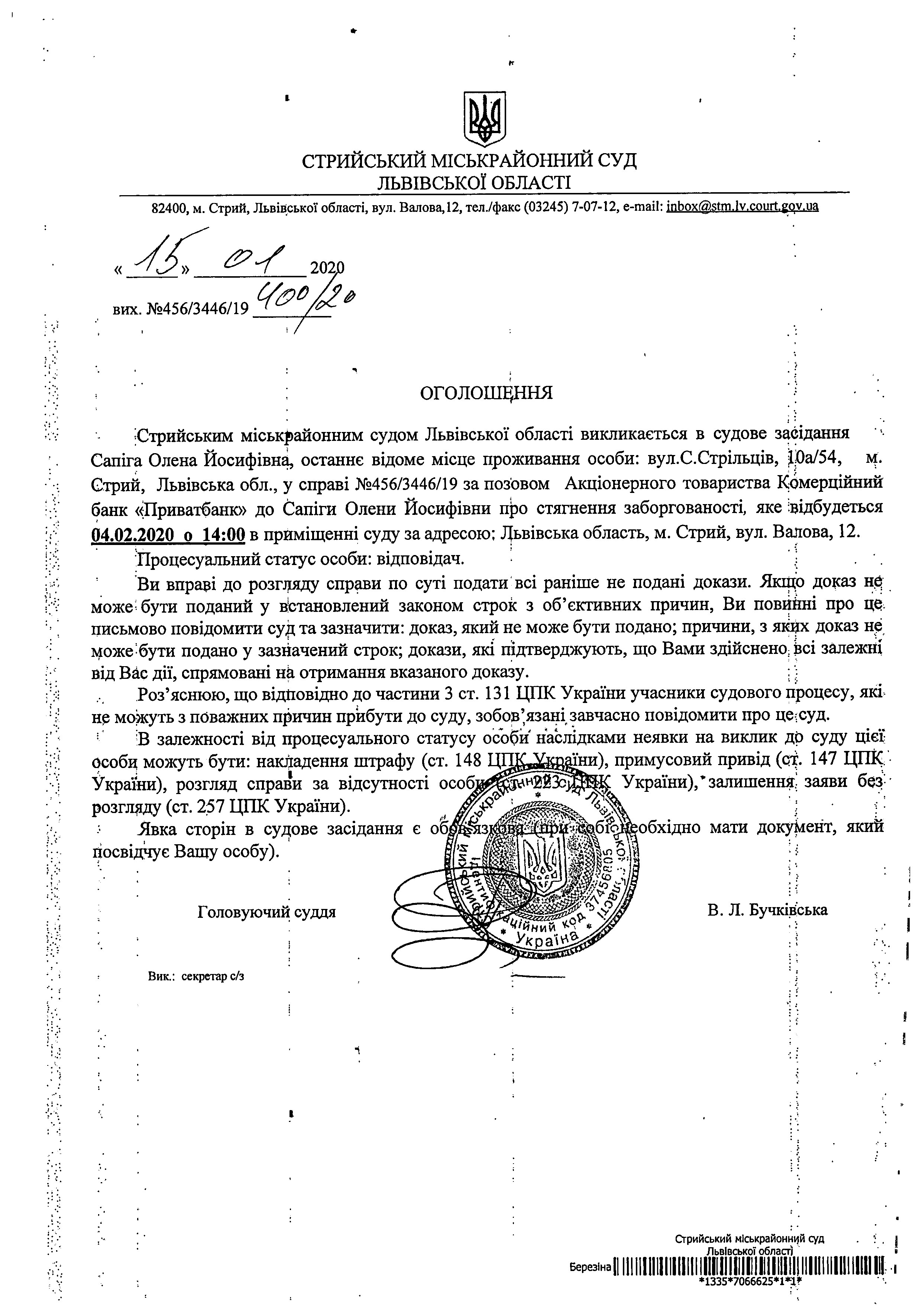 Про виклик Сапіги О.Й.