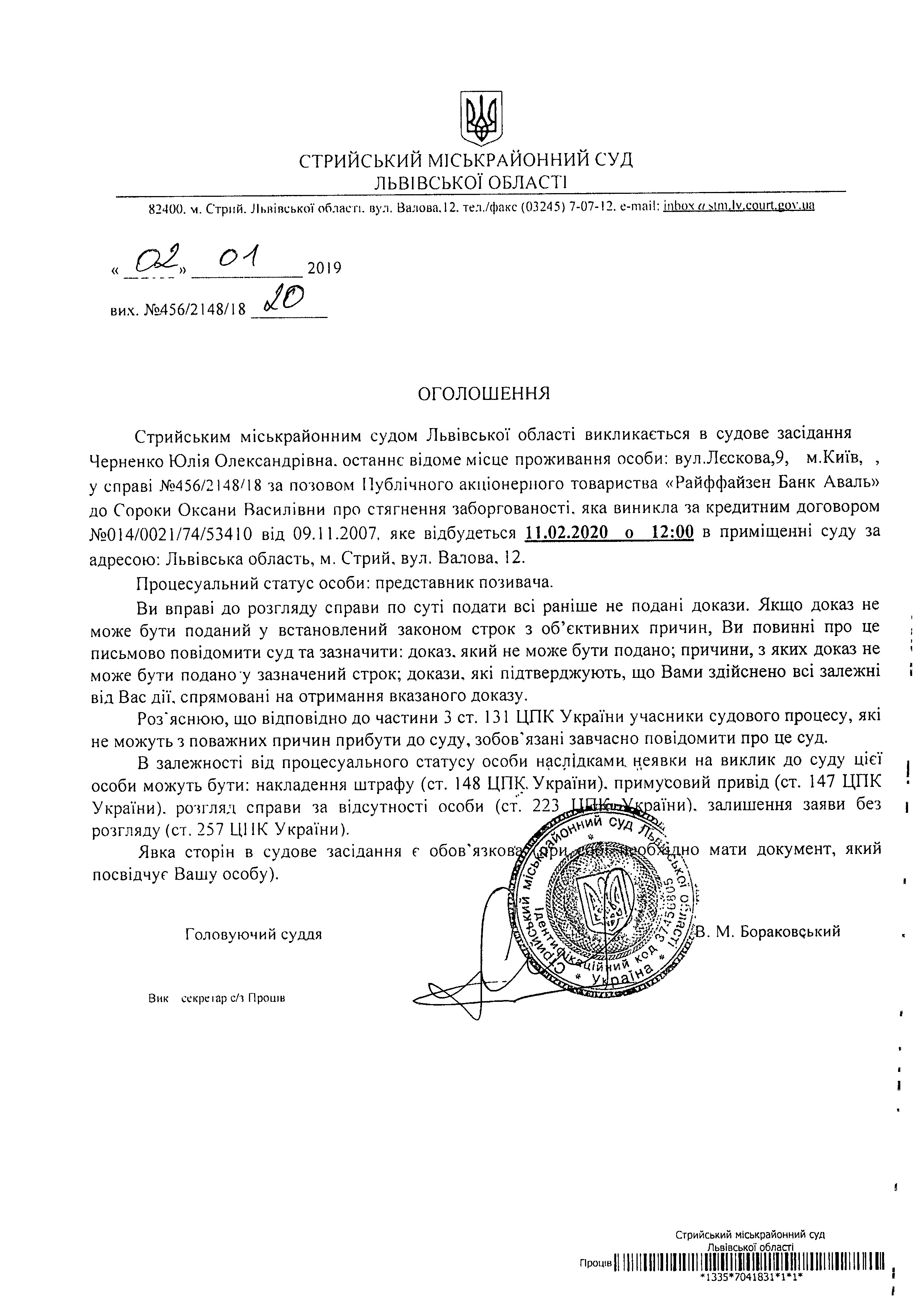 Про виклик Черненко Ю.О.