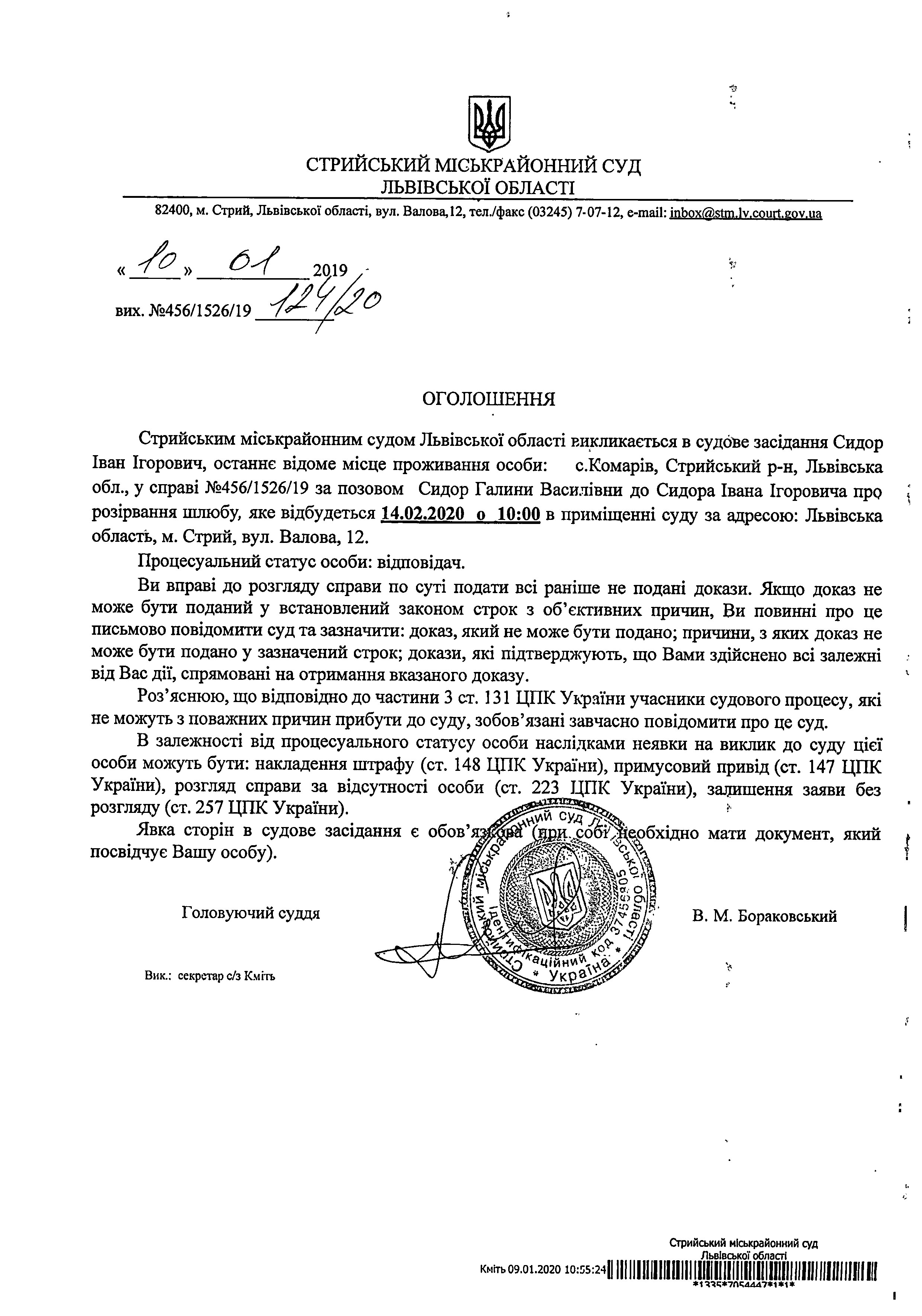Про виклик Сидор І.І.