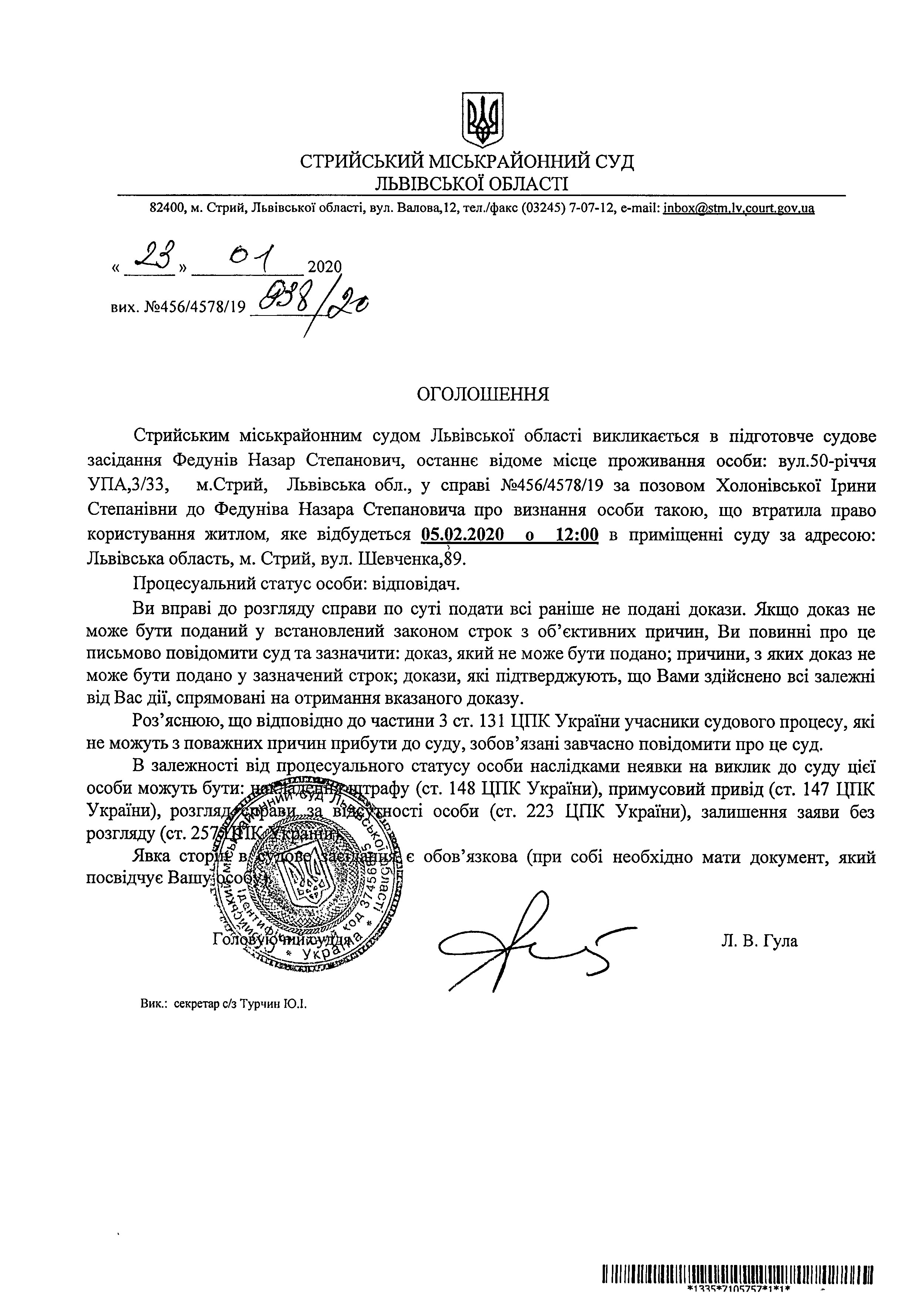 Про виклик Федунів Н.С.