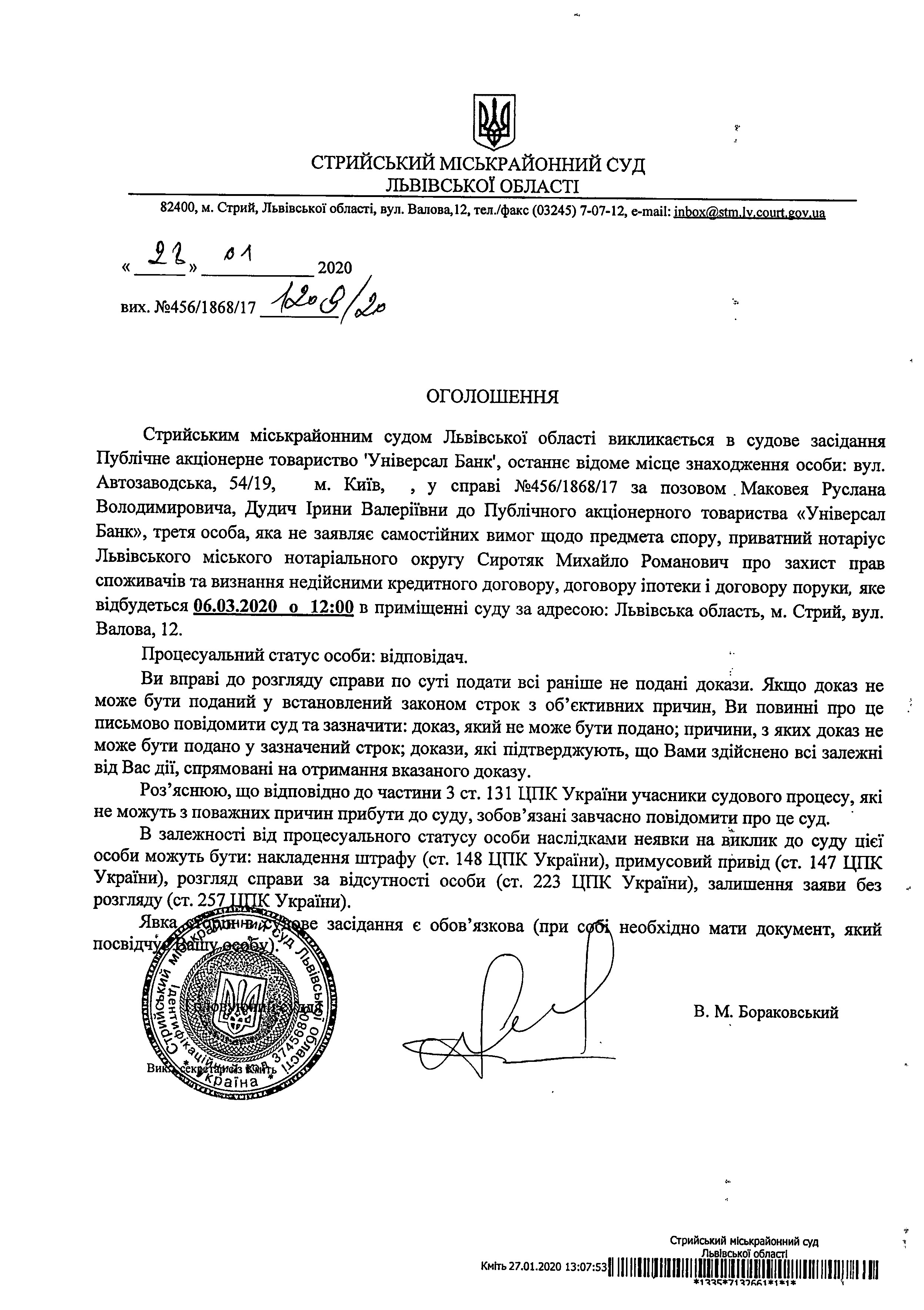 Про виклик Публічного акціонерного товариства "Універсал Банк"