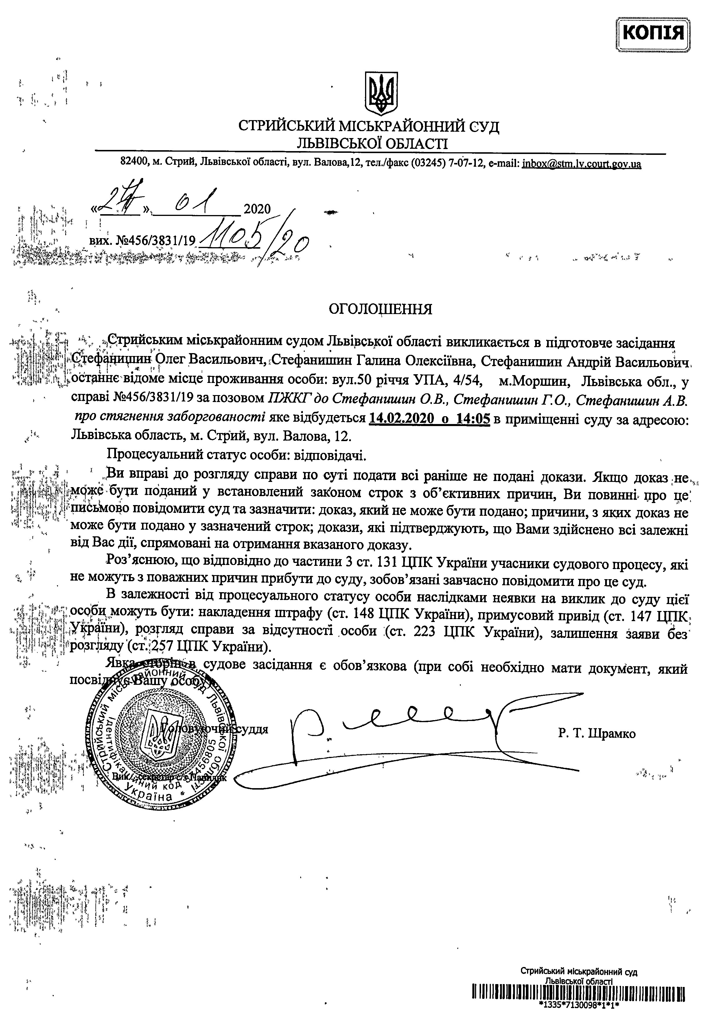 Про виклик Стефанишин О.В., Стефанишин Г.О., Стефанишин А.В.