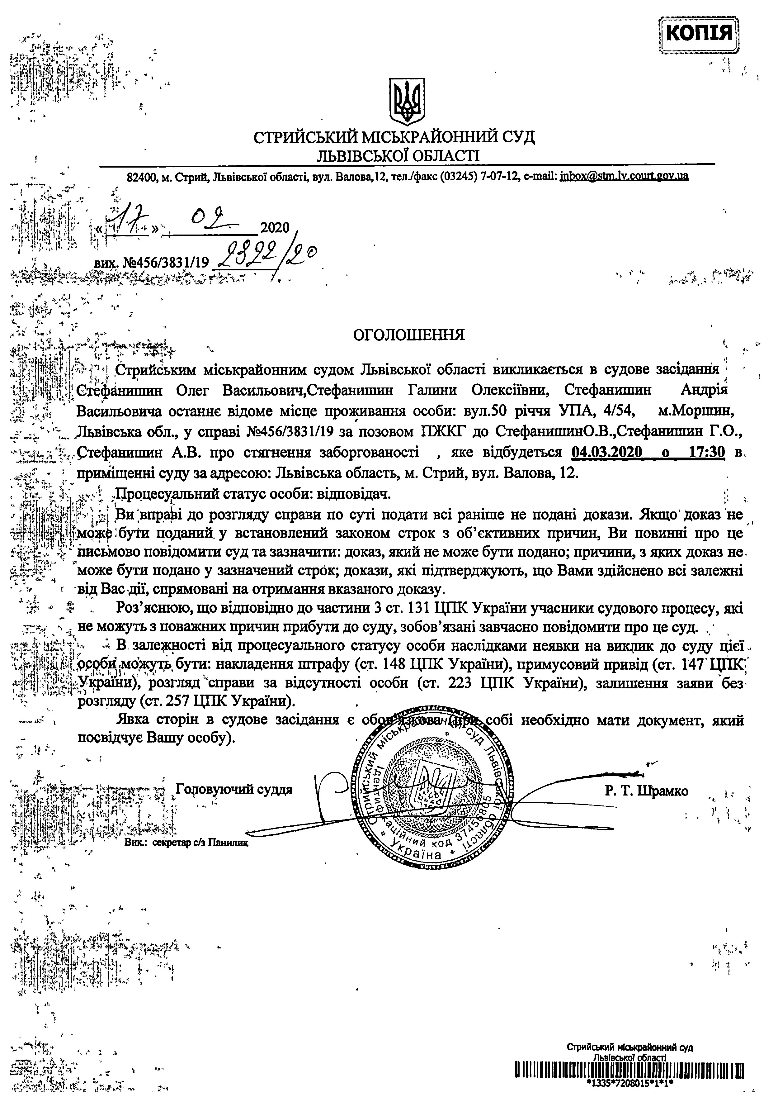 Про виклик Стефанишин О.В., Стефанишин Г.О., Стефанишин А.В.