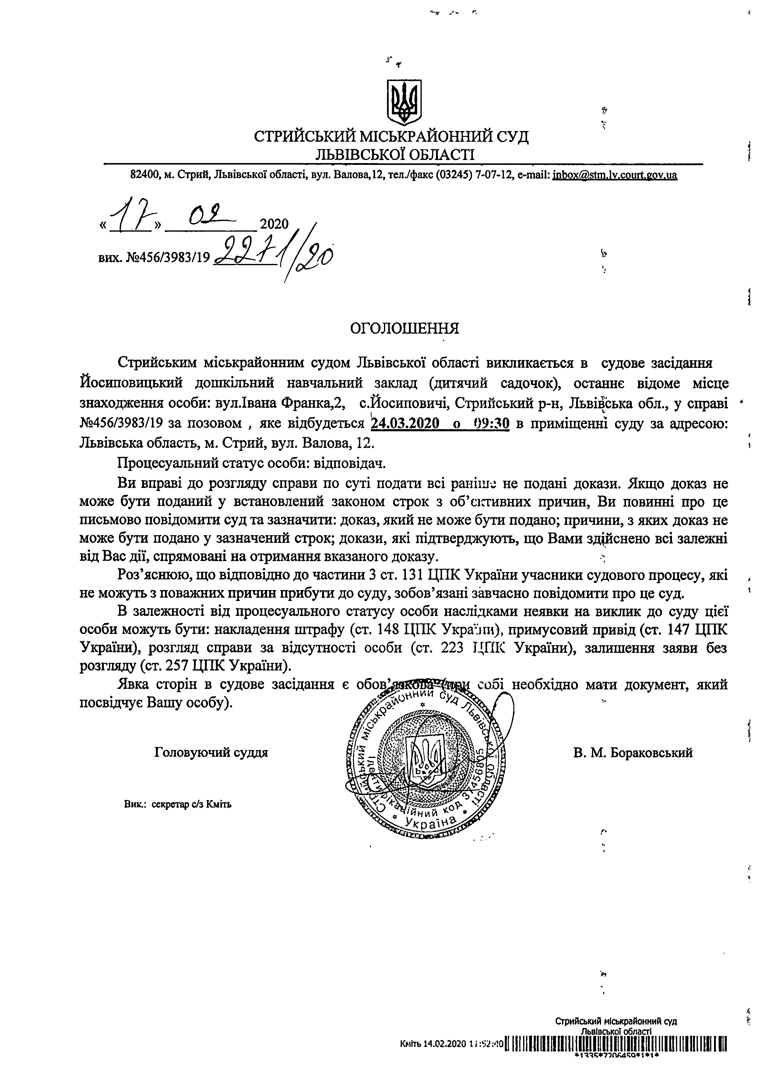 Про виклик Йосиповецького дошкільного навчального закладу (дитячий садок)