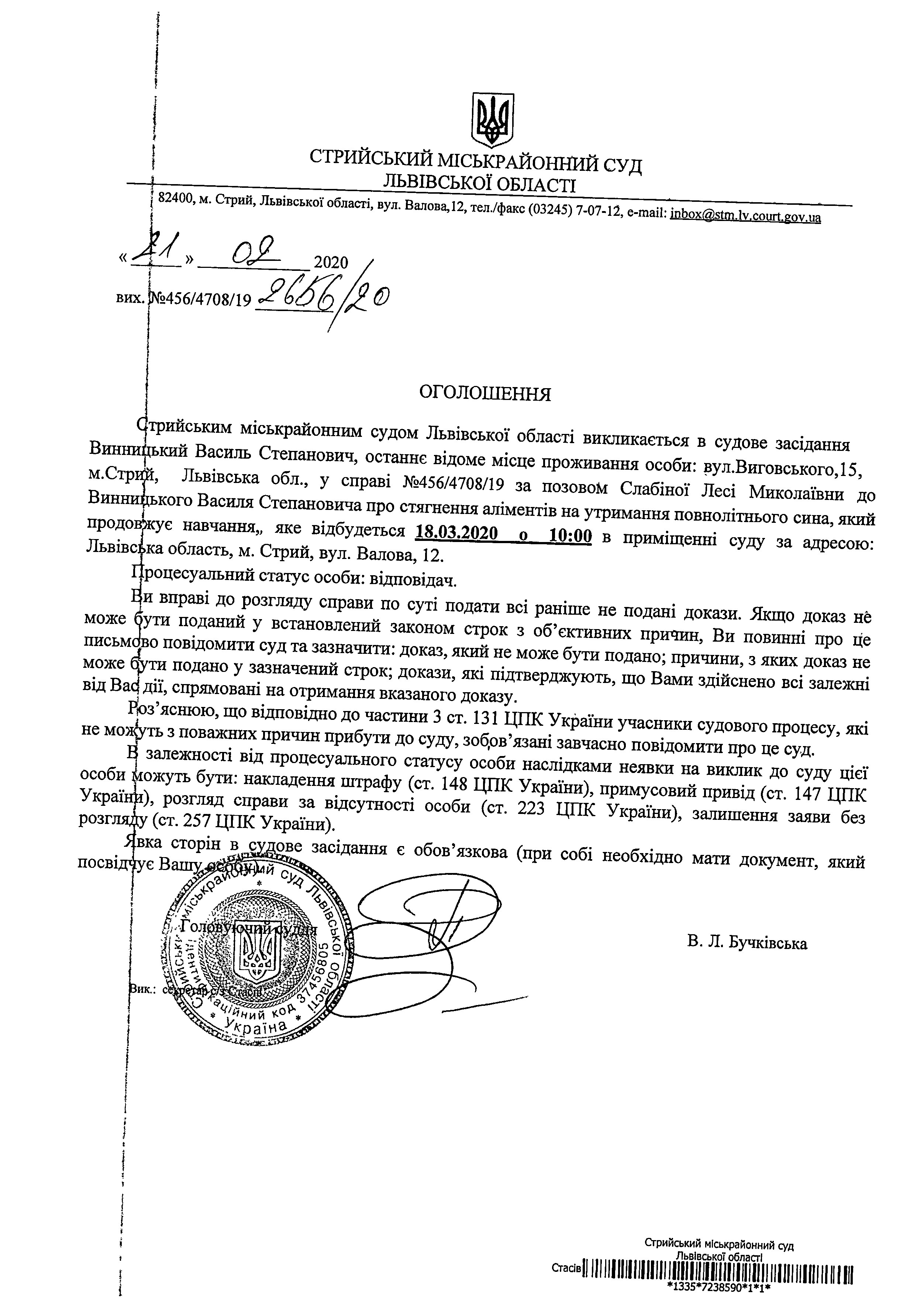 Про виклик Винницького В.С.