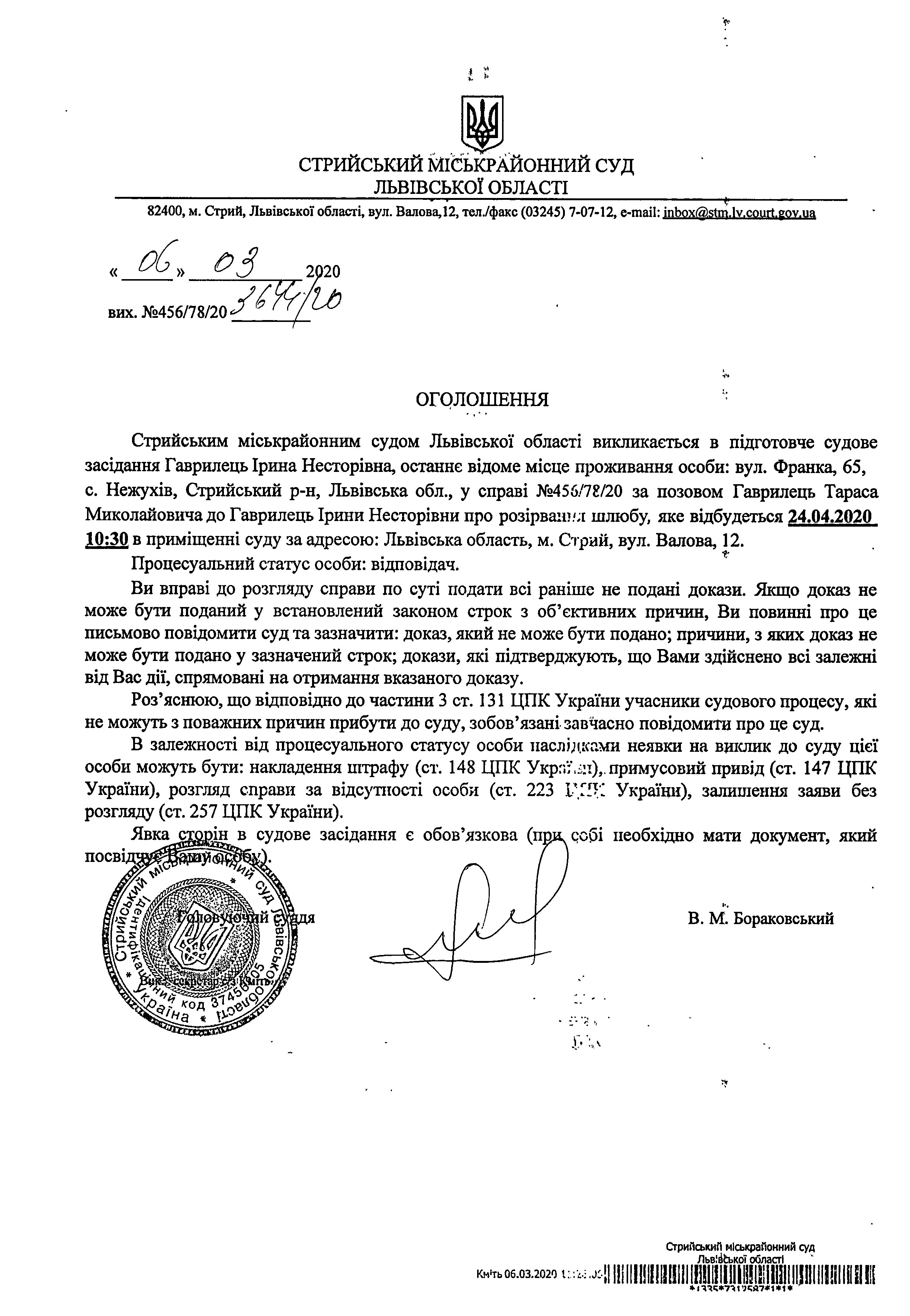Про виклик Гаврилець І.Н.