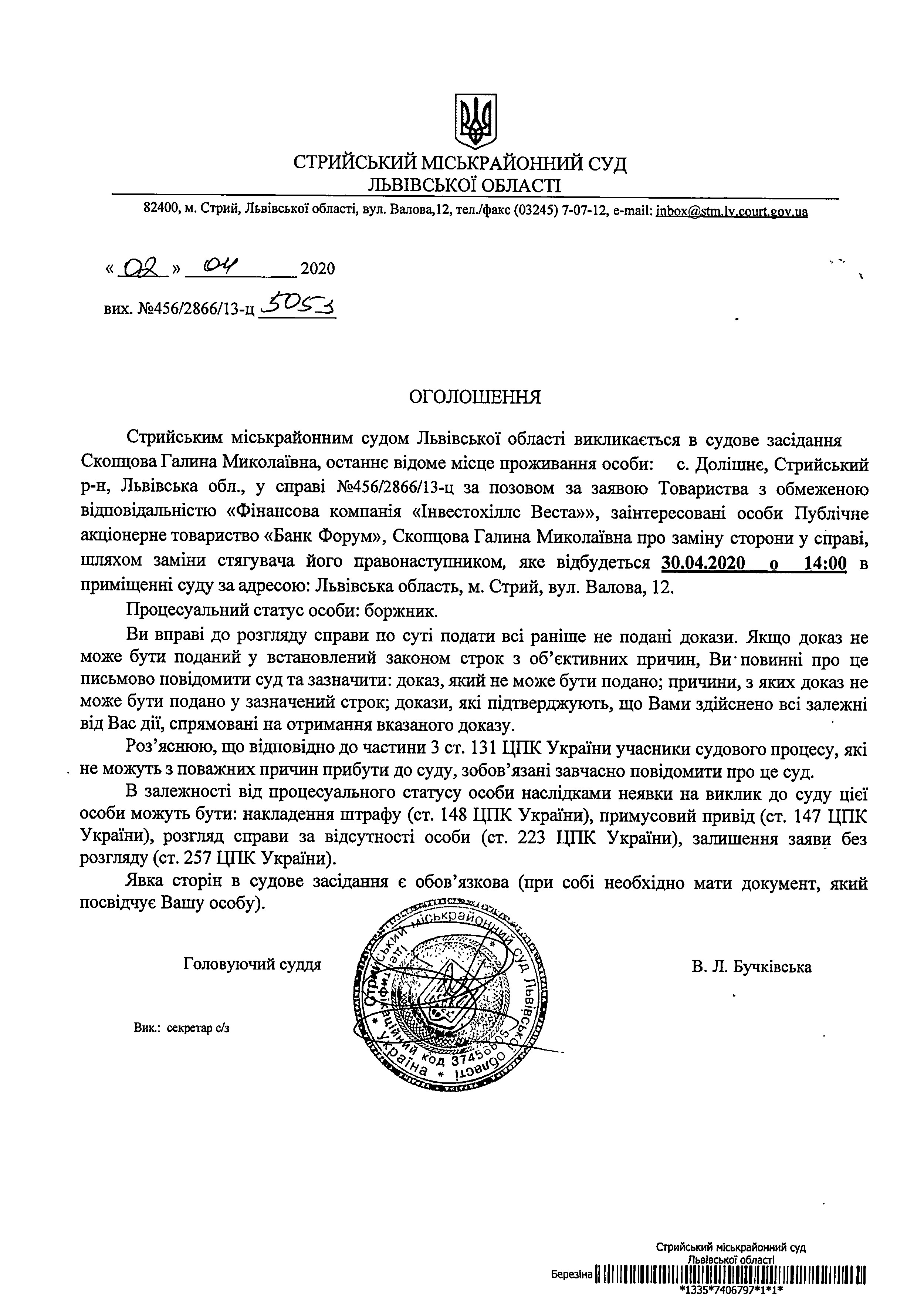 Про виклик Скопцова Г.М.