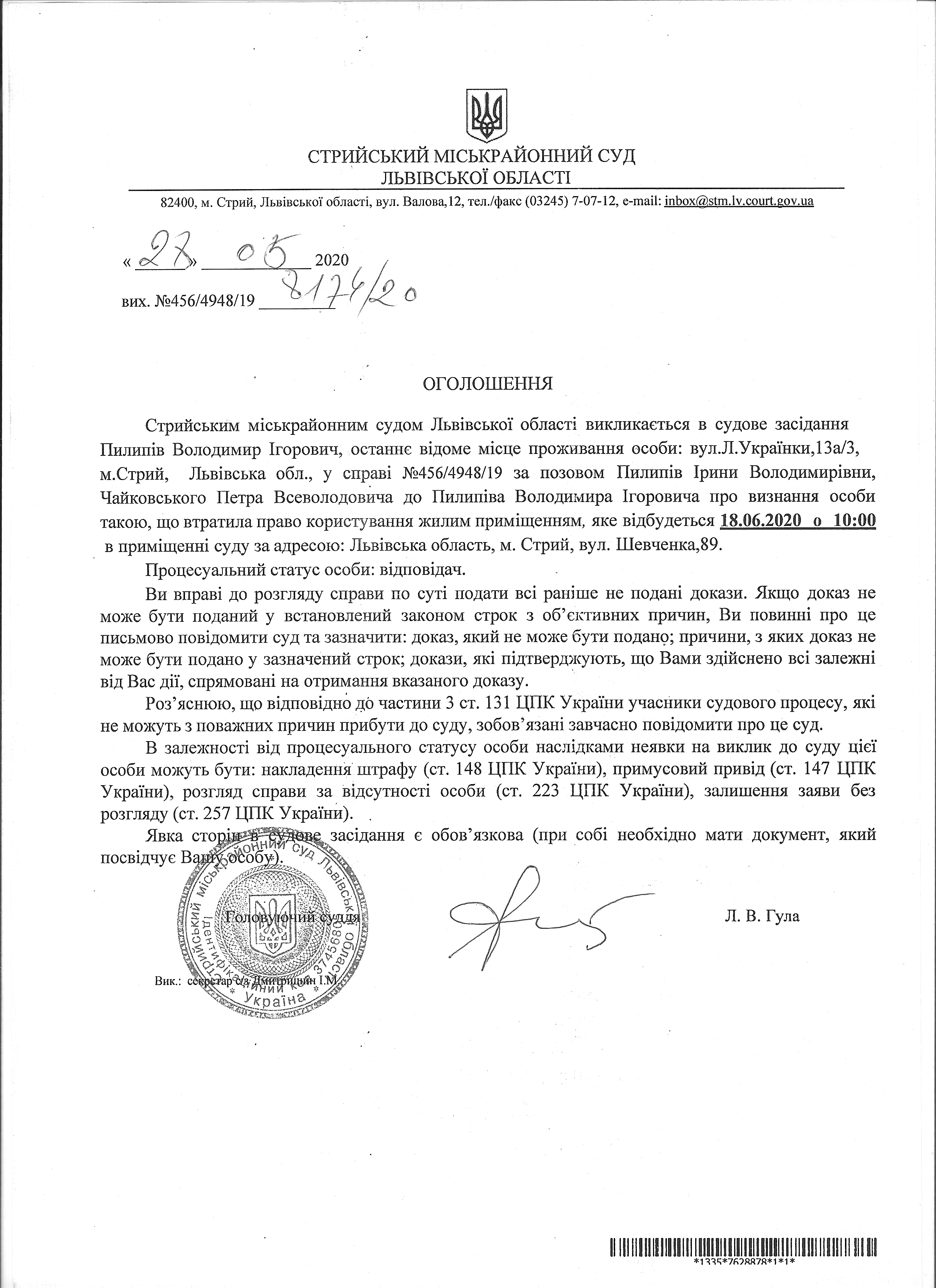 Про виклик Пилипів В.І.