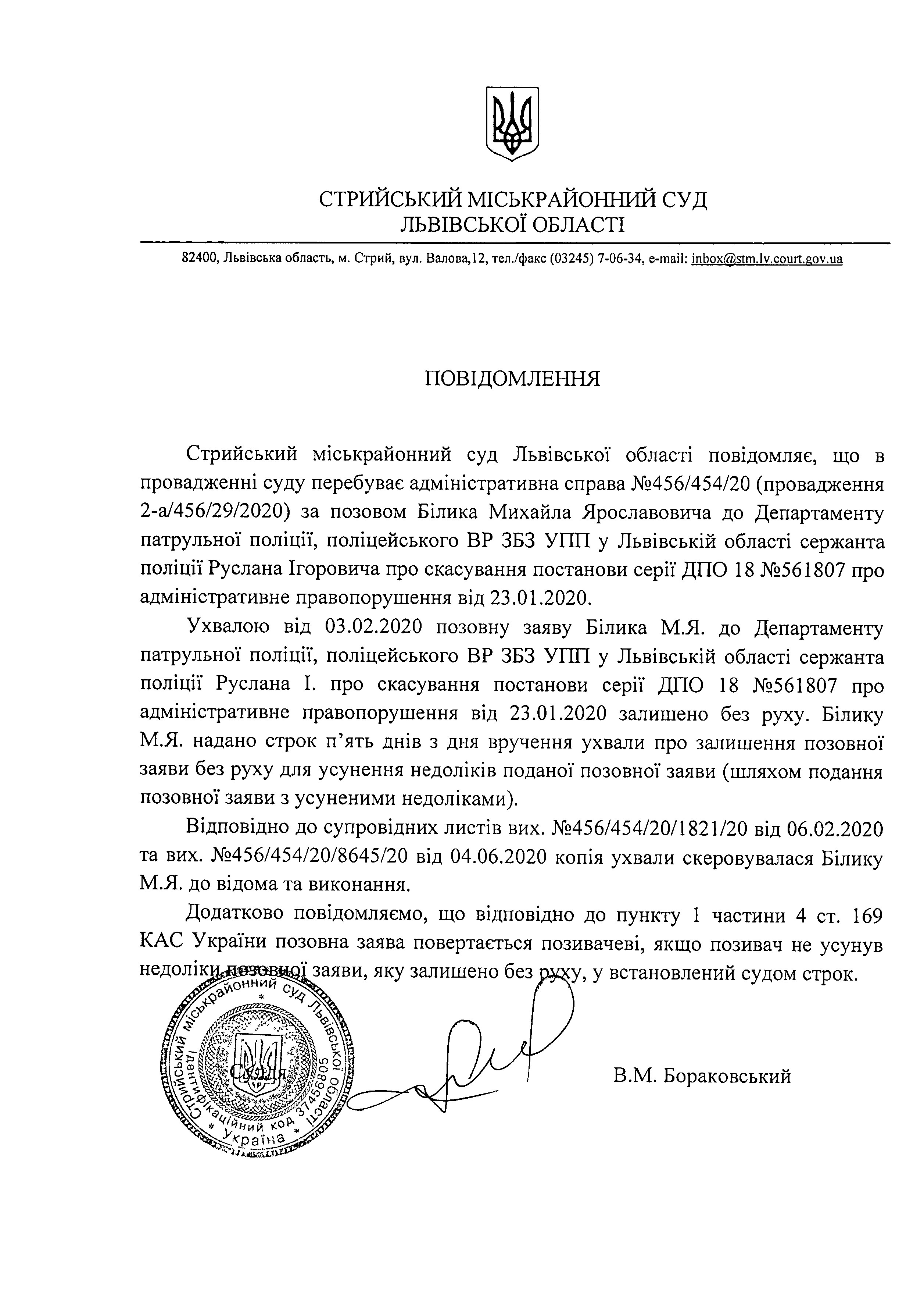 Повідомлення про дату, час та місце судового розгляду адміністративної справи