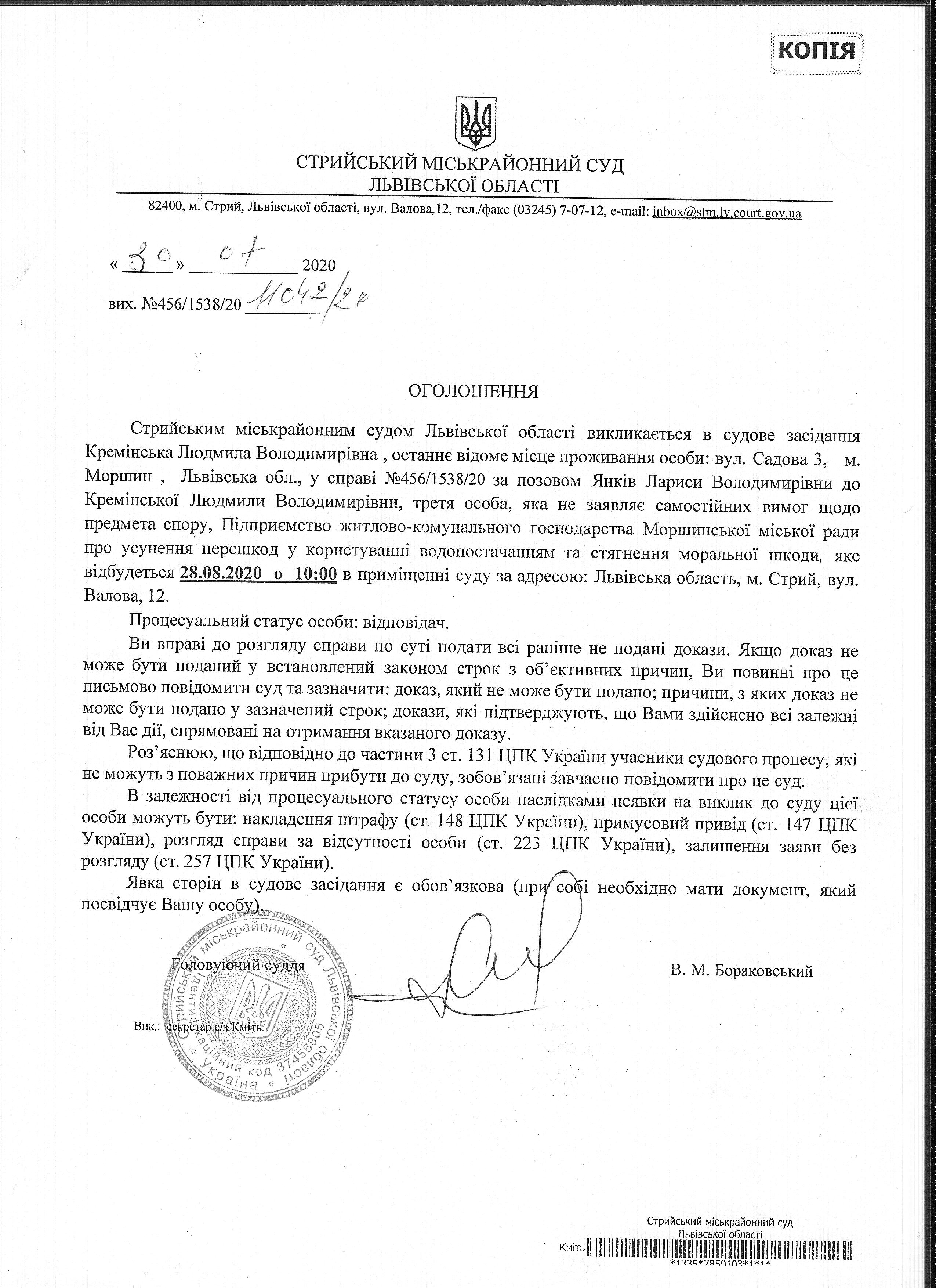 Про виклик Кремінської Л.В.